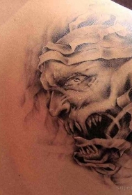 背部原始黑灰木乃伊怪物纹身图案