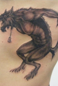 侧肋独特的黑灰幻想咆哮狼人纹身图案