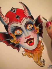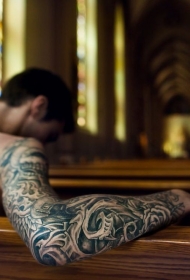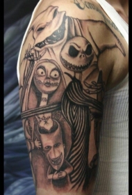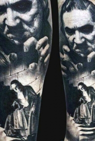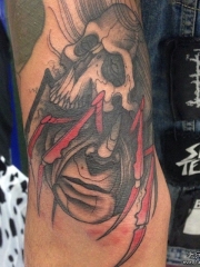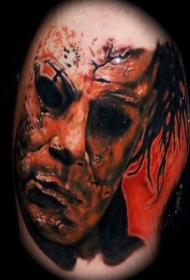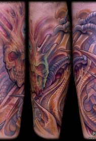 腿部恐怖风格彩色3D血腥怪物纹身图案