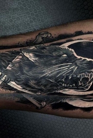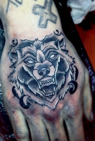 手背简单设计的黑灰邪恶怪物狼纹身图案