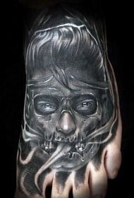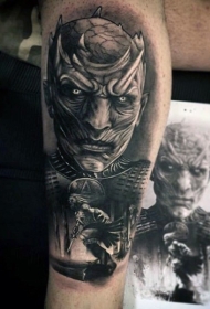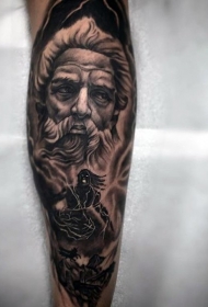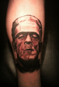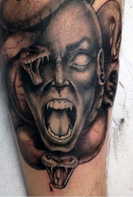 腿部惊人的黑灰怪物美杜莎头像纹身图案