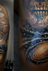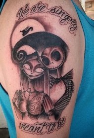 肩部棕色浪漫的主题色的怪物夫妇纹身