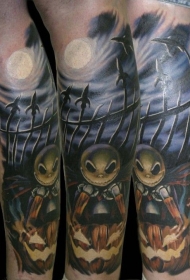 腿部彩色毛骨悚然的血腥僵尸怪物纹身