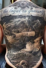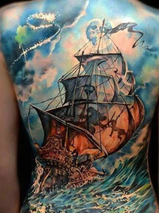 航海纹身 大面积满背航海主题的骷髅海盗船纹身作品
