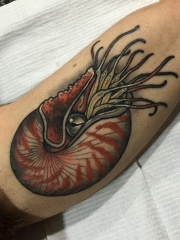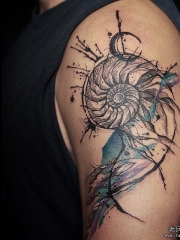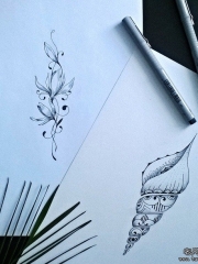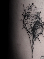 贝壳图案纹身 女生手臂上黑色纹身图片