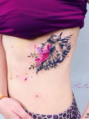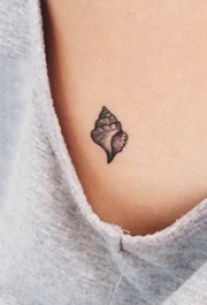 纹身锁骨女 女生锁骨下黑色的海螺纹身图片