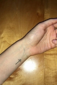 女生手臂上黑色简单抽象线条创意音符纹身图片