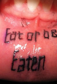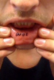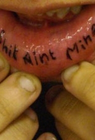 嘴唇内一排黑色字母纹身图案