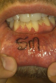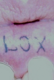 嘴唇内小字母纹身图案