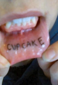 嘴唇内蛋糕英文纹身图案