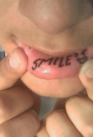 嘴唇内黑色字母微笑标志纹身图案