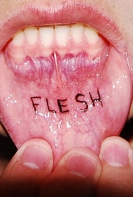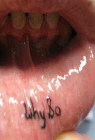 下嘴唇内黑色字母纹身图案
