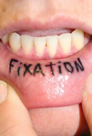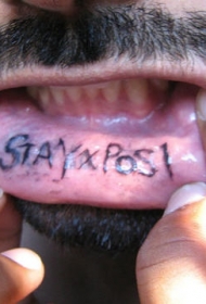 嘴唇内薄薄的黑色字母纹身图案