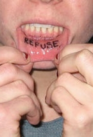 下嘴唇黑色拒绝英文字母纹身图案