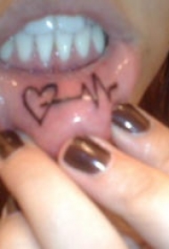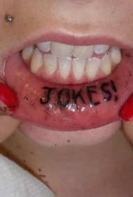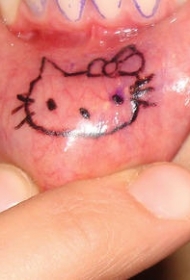 嘴唇内黑色卡通凯蒂猫纹身图案