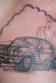 山脉与黑色跑车纹身图案