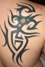 手臂黑色的鲤鱼和花朵海浪纹身图案
