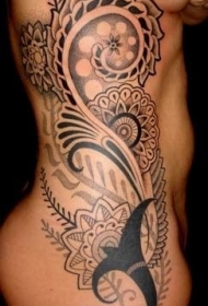 腰部黑白美丽的玫瑰藤蔓纹身图案
