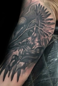 大臂黑灰风格闪电和飞翔的伊卡洛斯纹身图案