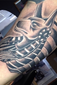 肩部黑色超现实主义风格鲤鱼头和人体纹身图案