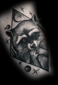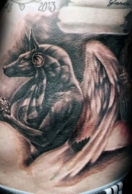 雕刻风格胸部黑色狼头与几何图形纹身图案