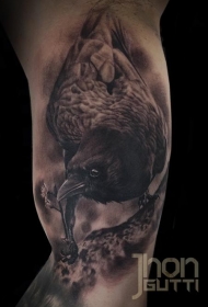 小腿黑灰风格神秘的女人与月亮纹身图案