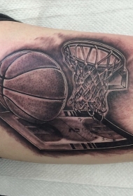 大臂黑灰风格篮球网纹身图案
