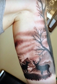 大臂精美逼真的黑灰野生鹿纹身图案