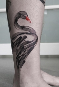 大腿可爱的黑色米妮形观赏花卉纹身图案