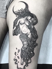 美女锁骨上性感的黑色的麋鹿角纹身图片