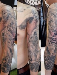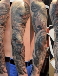 希腊纹身师KOSTAG的鲤鱼般若花臂刺青
