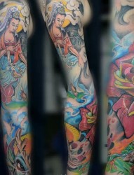 希腊纹身师KOSTAG的鲤鱼般若花臂刺青