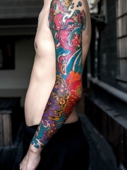 日式纹身花臂彩色传统纹身神话人物和动物纹身图案