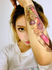 90后大眼睛漂亮美女花臂纹身图案