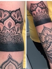 漂亮的黑色装饰风格花臂曼陀罗纹身图片