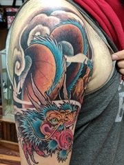 大臂上漂亮的全色龙图案纹身