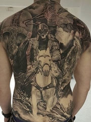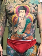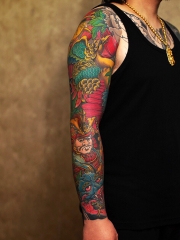 霸气的彩色大面积满背传统日式纹身花臂纹身图案