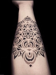 漂亮的黑灰色曼陀罗花臂纹身图案