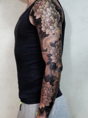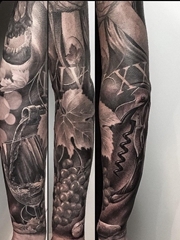 男性喜爱的黑灰色大胆花腿纹身时尚花臂纹身图案