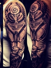 黑色的时尚花臂纹身点刺技巧几何纹身图案