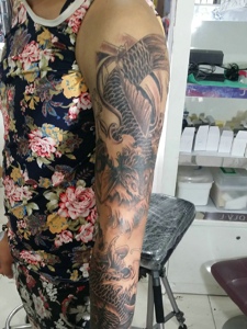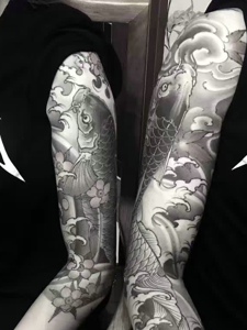 花臂情侣鲤鱼纹身图案值得拥有