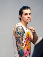 年轻有冲劲的花臂图腾纹身刺青
