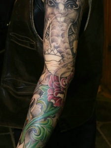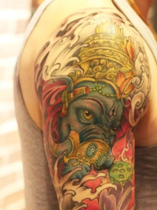 遮盖整个手臂的彩色象纹身刺青
