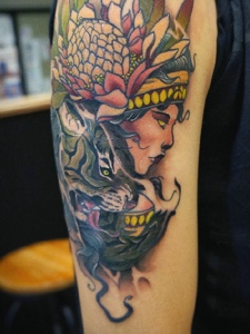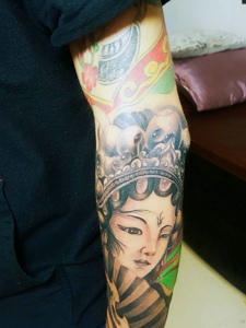 花臂欧美女性肖像纹身刺青