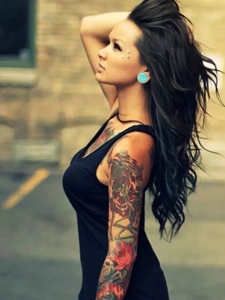 欧美女性时尚花臂纹身图案很抢眼