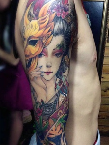 精致典型的花臂花妓纹身图案