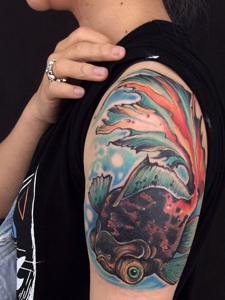 男士花臂小鱼纹身刺青十分洒脱