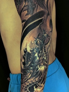 花臂经典个性邪龙纹身图案