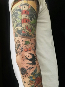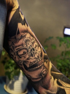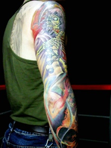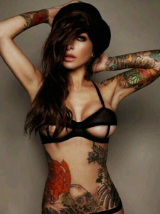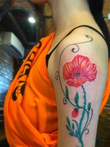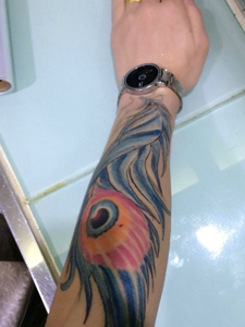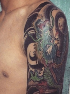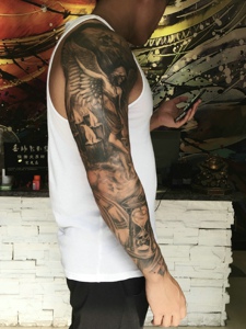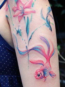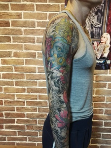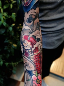 花臂彩色红鲤鱼纹身刺青完美帅气