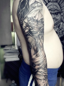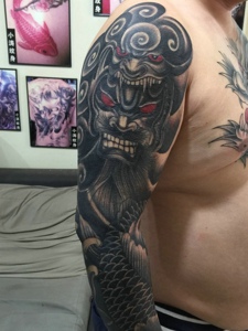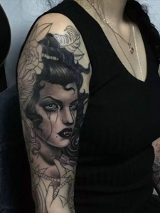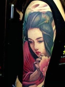 慈祥的汪妈妈花臂纹身刺青很亲切